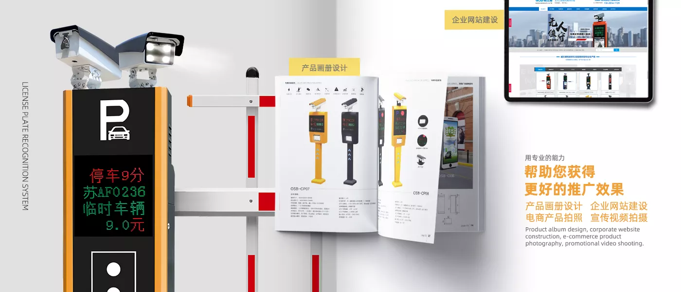 电动伸缩门,铝艺庭院门,悬浮门,车牌识别产品等品牌广告设计